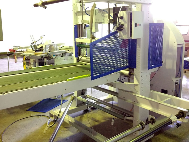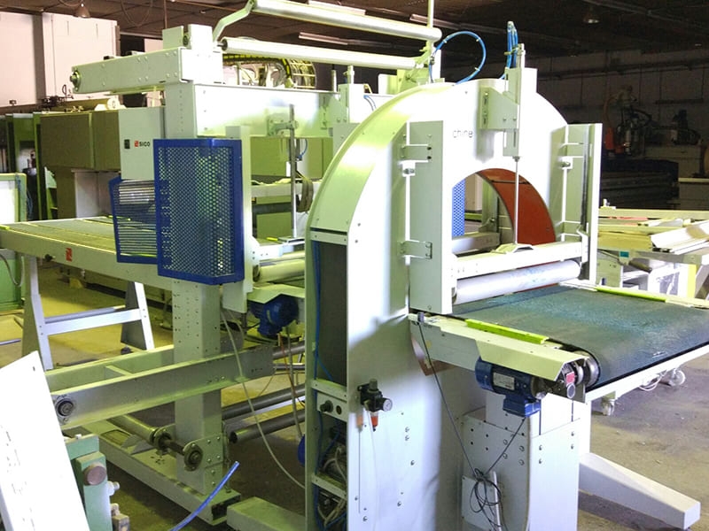 Mesa de banda a la entrada: con sistema automático de elevación de pieza para poner cantoneras.